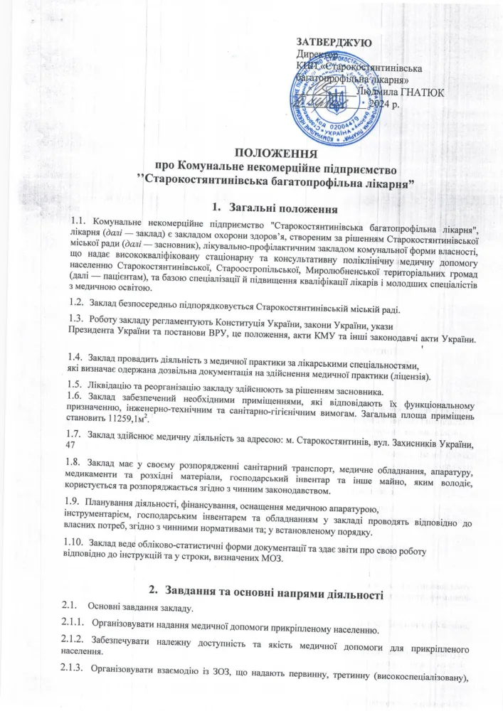 Ми — заклад охорони здоров’я, який щодня працює задля збереження найвищої цінності — здоров’я кожного члена нашої громади. Наша місія полягає в наданні якісної, своєчасної, доступної та ефективної медичної допомоги з урахуванням індивідуальних потреб пацієнта.