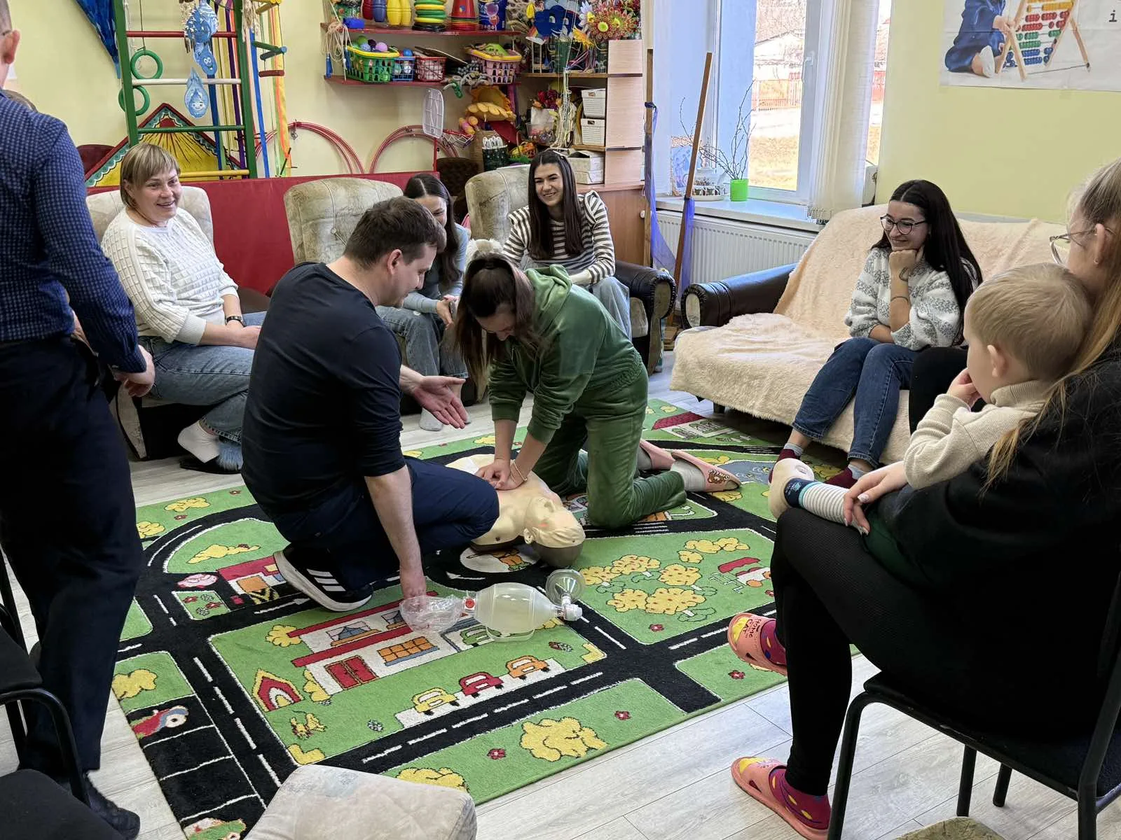 Сьогодні, наш лікар-анестезіолог Максим Трубецький завітав до Центру раннього розвитку дитини із надзвичайно важливою практичною зустріччю з базової підтримки життєдіяльності.