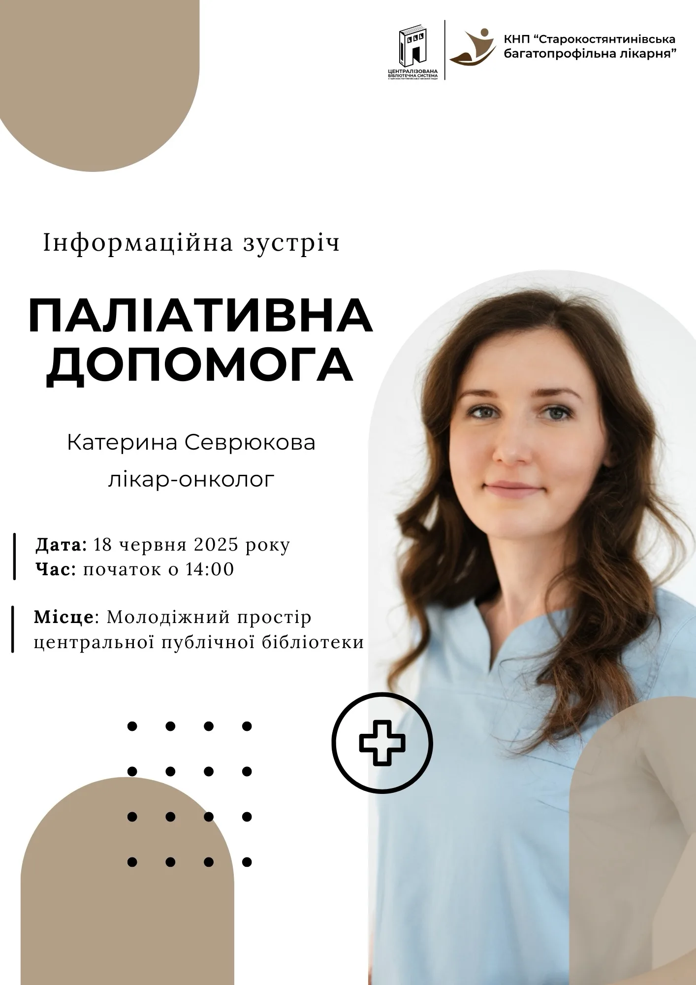 📢Шановні друзі, запрошуємо вас на зустріч з лікарем-онкологом Катериною Севрюковою👩🏻⚕️, де ми обговоримо одну з найважливіших тем сучасної медицини – паліативна допомога.