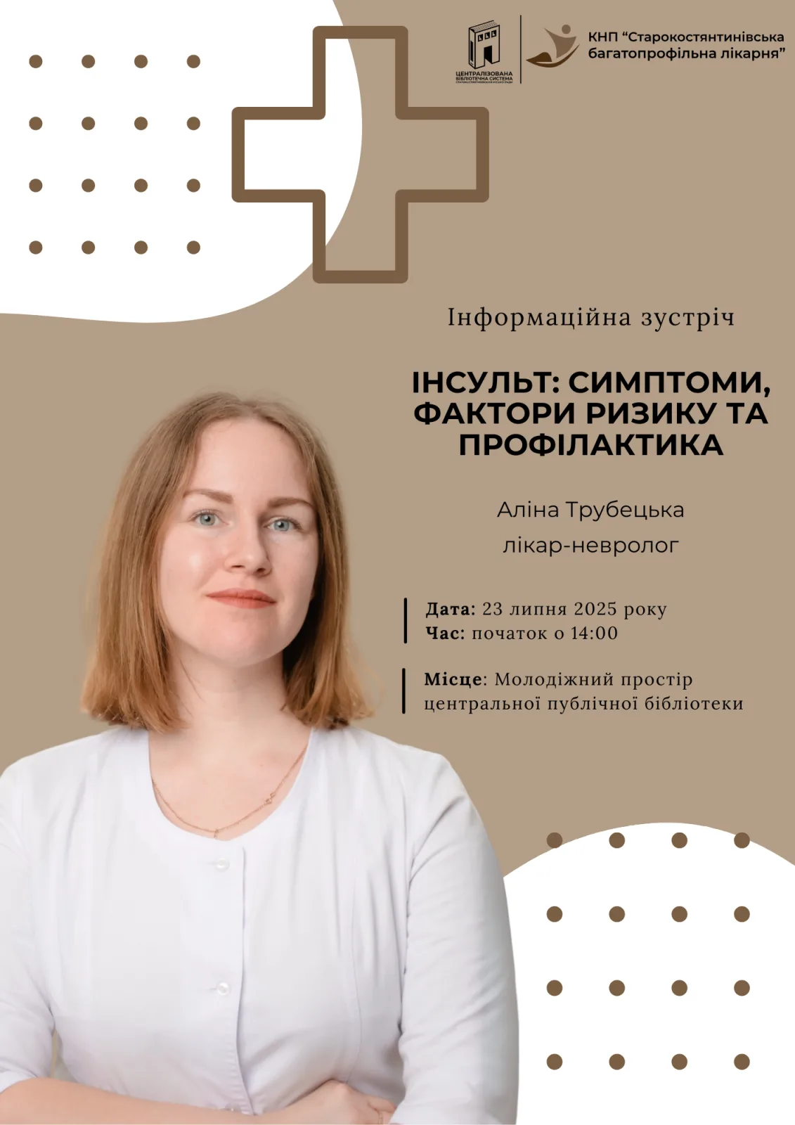 Друзі, хочете дізнатися більше про інсульт та як захистити себе і близьких? Запрошуємо вас на інформаційну зустріч!🎯 Тема: “Інсульт: симптоми,...