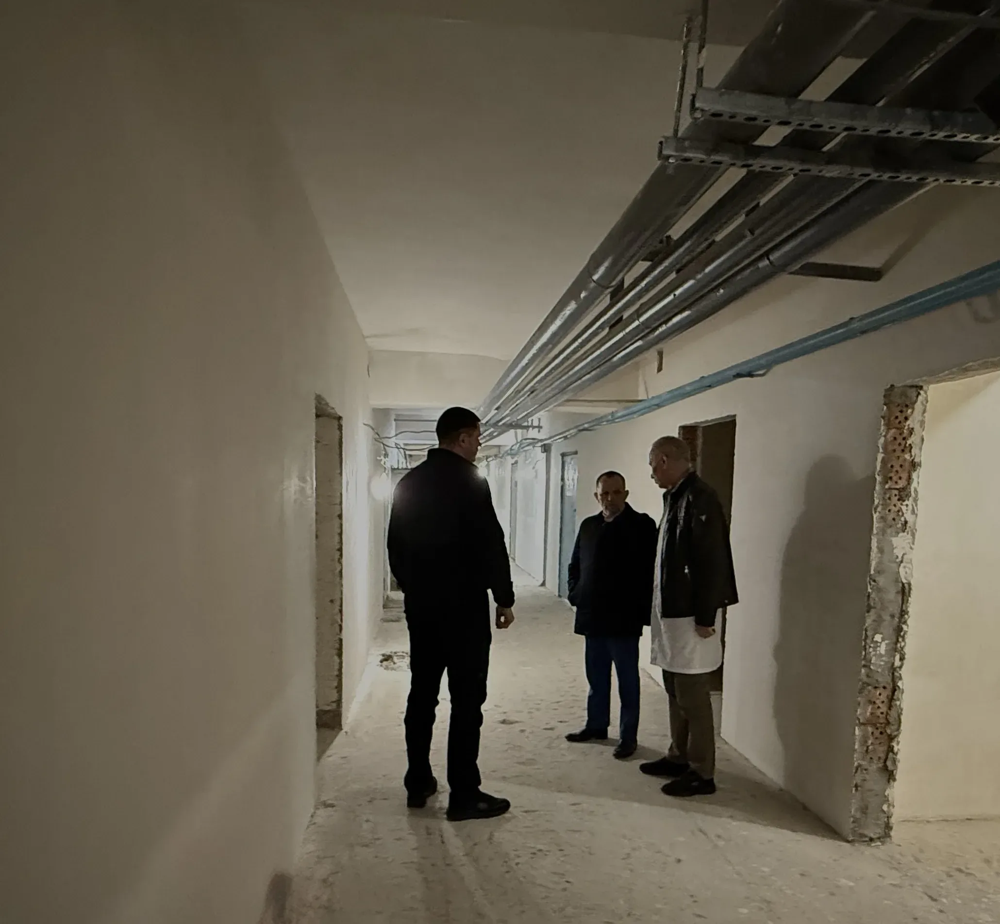 Головною метою візиту було ознайомлення з поточним станом реконструкції протирадіаційного укриття на території медичного закладу та ходом будівельних робіт, які виконуються підрядною організацією ПП «Спорт Прогрес».
