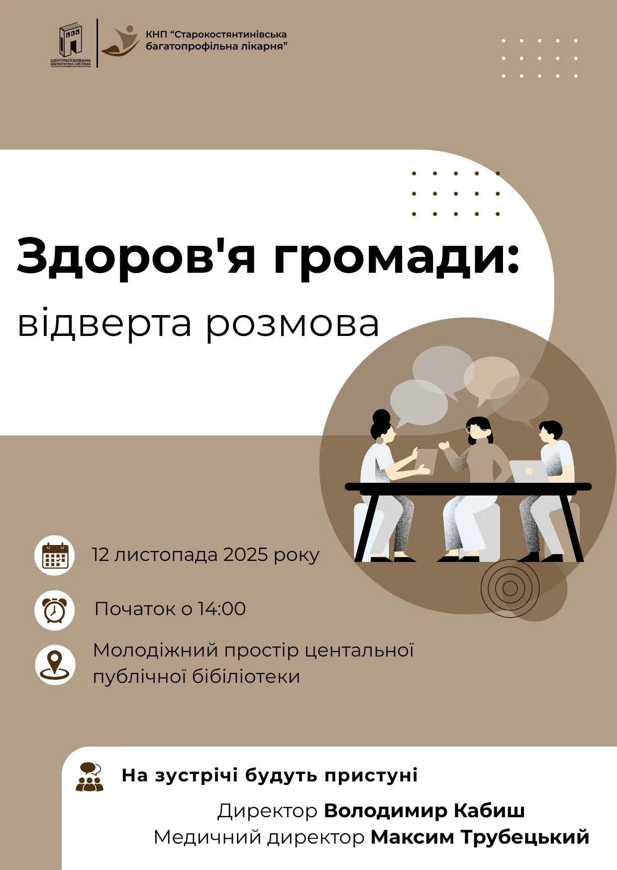 Запрошуємо вас на відкриту зустріч з керівництвом нашої лікарні, яка відбудеться: